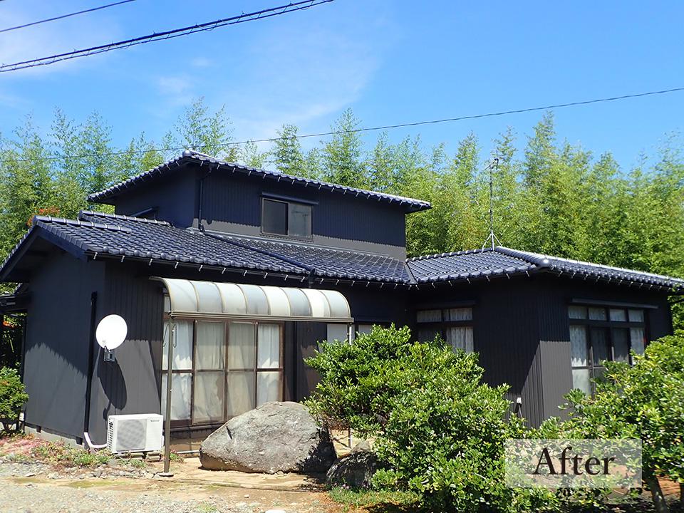 Construction Case 施工事例 カテゴリ オフィス・店舗 ホテル・宿泊施設 医療施設 公共施設 工場 住宅 S様邸 改修工事2025.8 外観のリニューアルで新築のように。外壁の板金部分を貼り替え、モルタル部分と破風板は塗り替えてシックな黒一色に。軒樋も色を合わせて取り替えました。 概要 工事種別改修工事 もどる